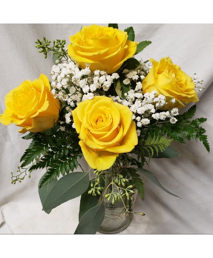 "SUNRISE"...4 YELLOW ROSES WITH BABY'S...(R)